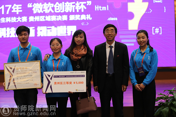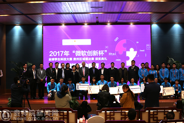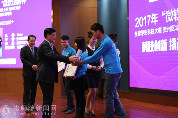 贵安新区开发投资有限公司副总经理陈永军、省教育厅副厅长黄健、微软全球资深副总裁亚历克斯(Alex)出席颁奖典礼,花溪大学城管委会副主任张力主持颁奖典礼,校党委书记石培新、副校长何林参加了颁奖典礼。