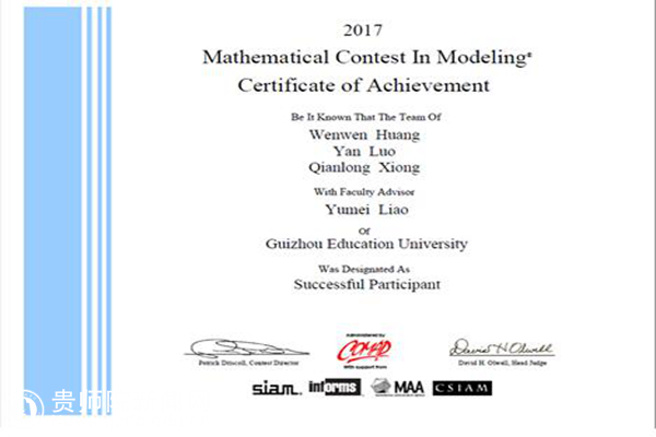 另一支代表队获得了三等奖(Successful Participant),由14级统计学专业的熊前龙、黄雯雯、罗艳三位同学组成,参赛题目是C题(Cooperate and navigate),该问题主要是解决当前城市交通容量和道路网设置的问题。