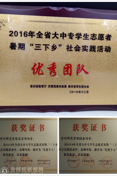 本网讯 2016年6月,应省委宣传部、省文明办、省教育厅、团省委、省学联的联合发文倡导,在校团委的指导和支持下,在外国语学院党政班子的领导下,外国语学院组织志愿者投入到以“青春建功十三五·携手共筑中国梦”为主题的全省大中专学生志愿者暑期“三下乡”社会实践活动,目的是让学生走进基层、深入社会、了解国情、接受锻炼,在参加社会实践的过程中培育和践行社会主义核心价值观,从而进一步坚定为实现中国梦而努力奋斗的理想信念。在全省900余支团队中,经过层层筛选,最终,外国语学院“三下乡”社会实践团队荣获该活动“优秀团队”称号。其中吴宏伟、张鑫两位同学均荣获“先进个人”称号。
