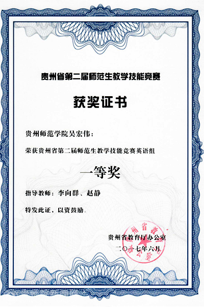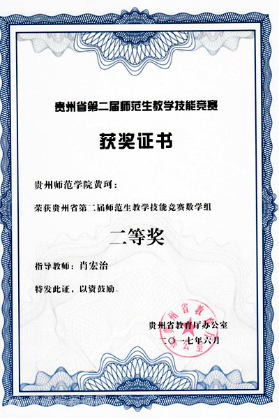 本网讯 近日,省教育厅公布了贵州省第二届师范生教学技能竞赛结果,pp电子学生喜获佳绩。该项比赛于2016年11月,由贵州省教育厅主办、贵州师范大学花溪校区举办,来自全省15所高校的学生分别在语文、英语、物理、数学、化学、生物6个学科同台竞技。