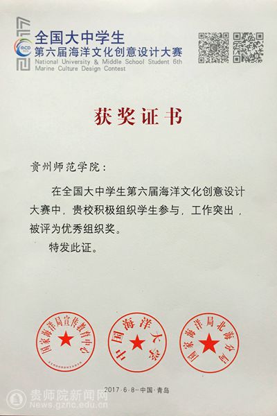 据悉,第六届海洋文化创意设计大赛是由国家海洋局宣传教育中心、中国海洋大学、国家海洋局北海分局共同举办,有来自清华大学、西安美术学院、南京艺术学院、天津美术学院、鲁迅美术学院、湖北美术学院、广州美术学院等550多所高校参与。此次大赛主题是“智慧海洋”,作品涵盖平面设计、产品设计、环境景观、数字媒体等类别。