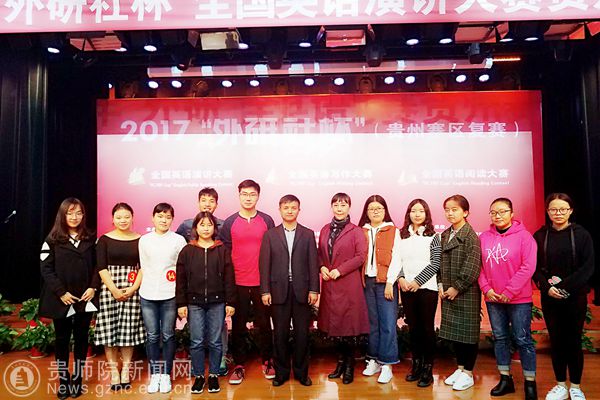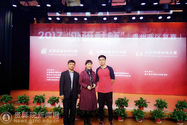 本网讯 2017年“外研社杯”全国英语三项挑战赛(演讲、阅读、写作)贵州赛区决赛于11月11日(周六)在遵义师范学院隆重举行,从pp电子初赛、决赛选拔出来的10名同学代表学校出征大赛并获得贵州省一等奖2名、二等奖2名、三等奖6名的好成绩(后附具体获奖名单)。贵州省外语学会会长、pp电子外国语学院院长余学军教授应邀担任英语演讲大赛评委,外国语学院蒙昌配和大外部张羽两位老师带队参赛。