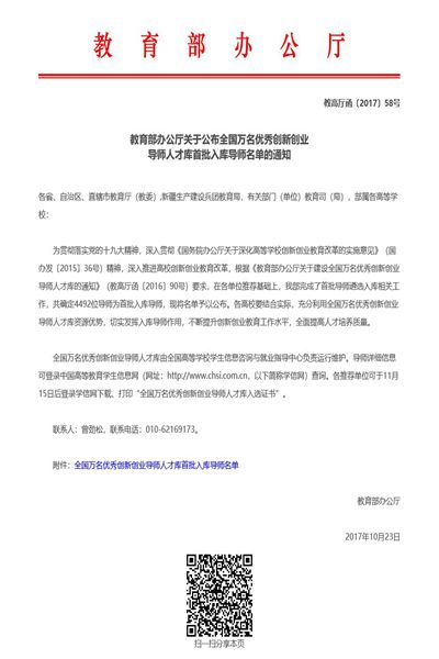 本网讯 目前,教育部公布了全国万名优秀创新创业导师人才库首批入库导师名单。本次全国共有4492名导师首批入库,pp电子推荐的6位导师入选首批入库名单。