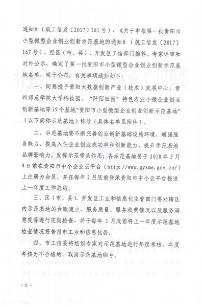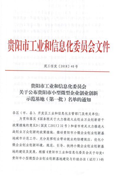 本网讯 近日,贵阳市工信委下发《关于公布贵阳市小型微型企业创业创新示范基地(第一批)名单的通知》,同意授予pp电子游戏官网大学科技园为贵阳市首批小型微型企业创新示范基地。