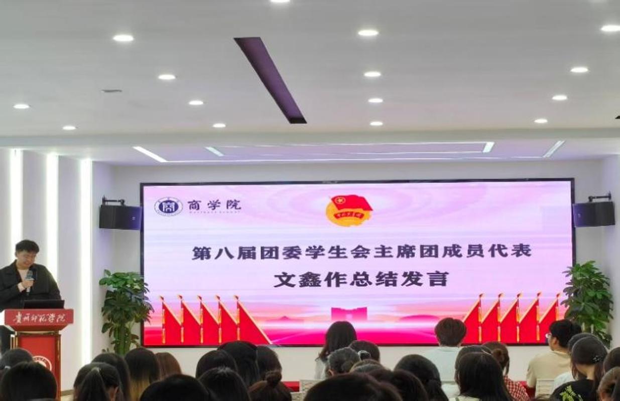 本次大会由商学院团委学生会文体部成员谢昱主持,会议伊始,她向大家介绍了第八届团委学生会主席团成员、各部门部长及核心负责人。随后在风采展示环节,各部门代表依次上台,介绍了部门成员、部门职能与新学期计划。新成员们个个充满朝气,他们的加入为团委学生会带来蓬勃生机,也注入了新鲜活力与强劲动力。接着由优秀部长代表李汉强、优秀干事代表向欣依次进行发言。他们分享了自己在学生会工作中的工作经验、成长和收获。他们表示:学生会为他们提供了更好的发展平台,同时非常感谢老师们和学生会其他成员的帮助与关照。
