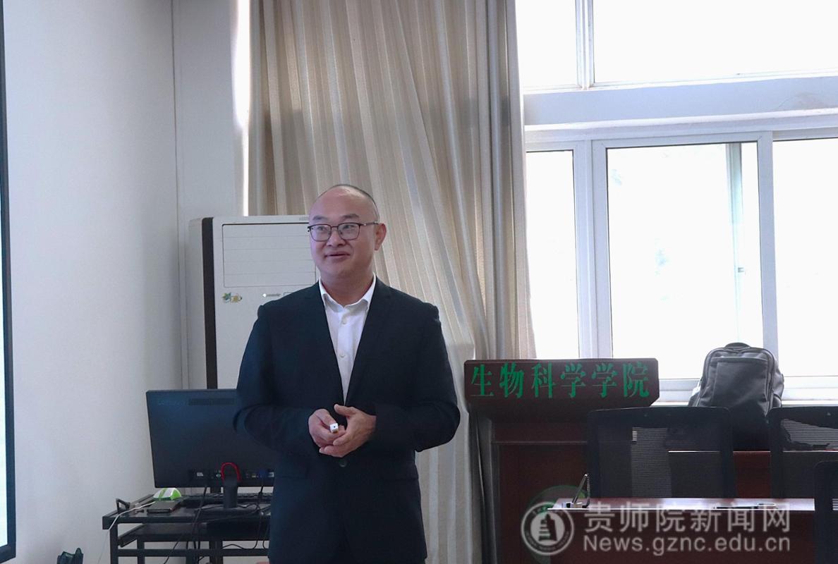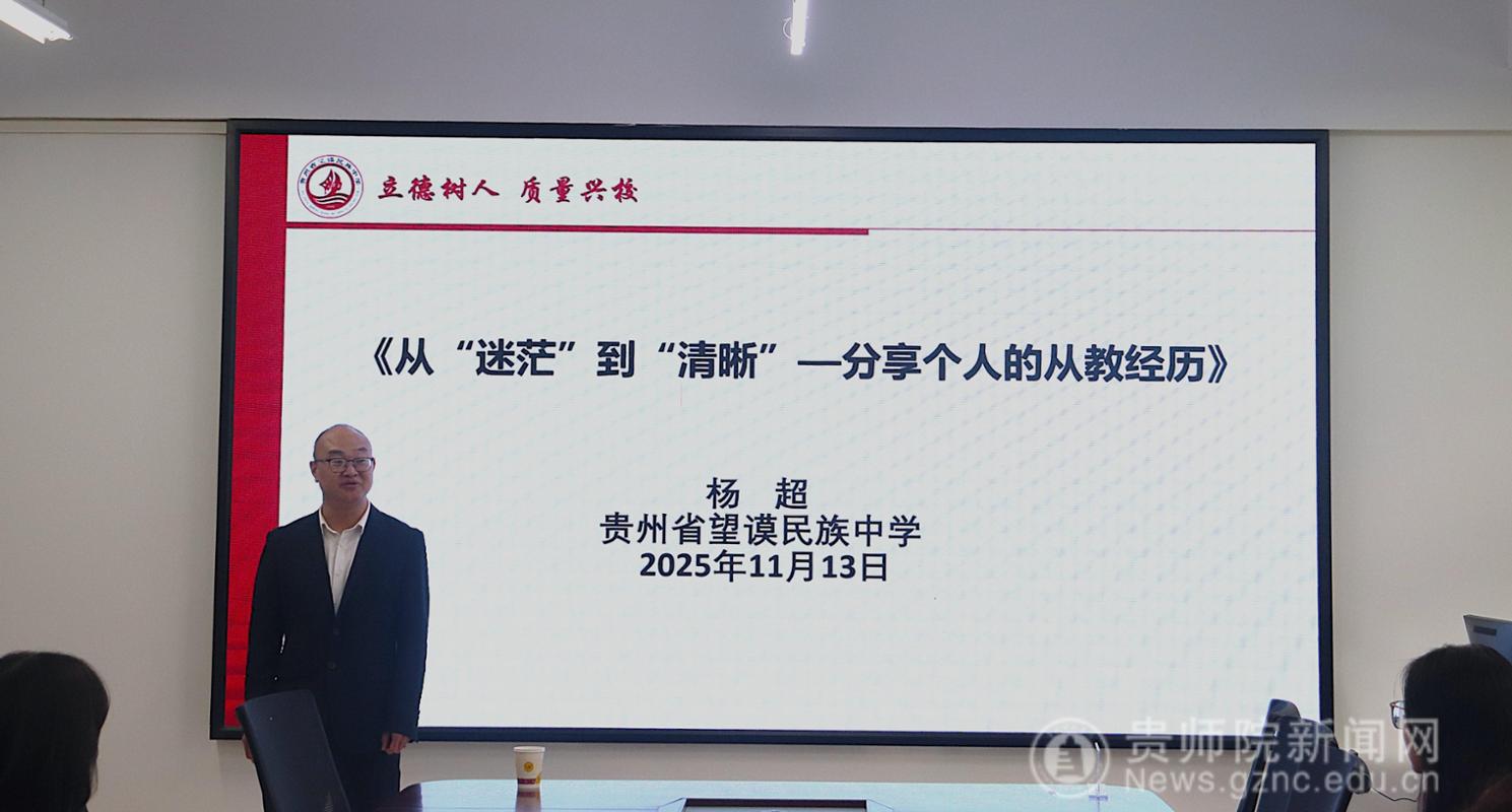 本网讯 为助力学生明晰职业发展方向,汲取从教经验,11月13日,生物科学学院特邀贵州省望谟民族中学杨超老师,于宁静楼611开展《从“迷茫”到“清晰”——分享个人的从教经历》主题学术讲座。本次讲座由学院副院长孟泽彬主持,24应生一班学生到场聆听。