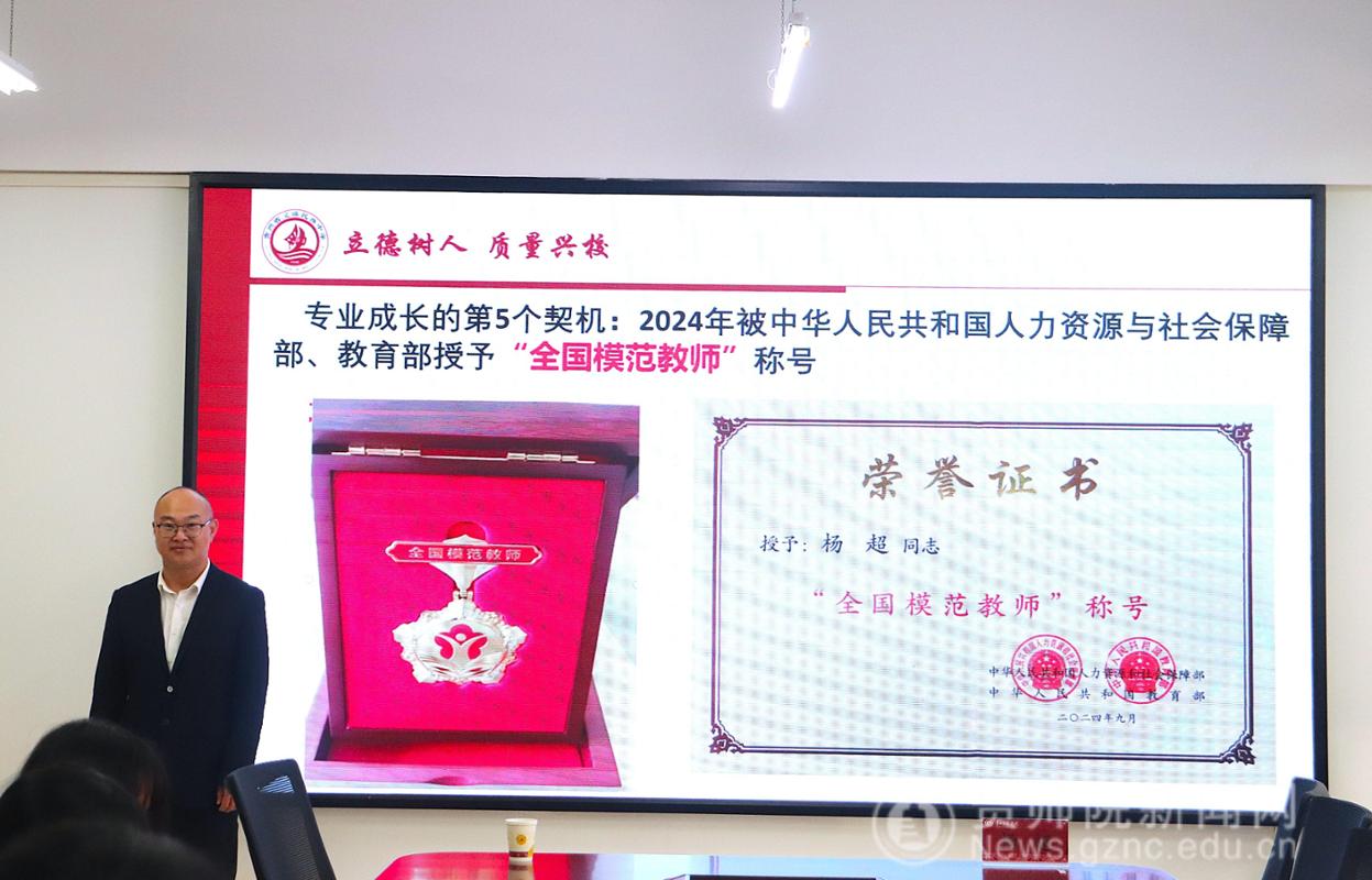 讲座伊始,孟泽彬向大家隆重介绍了杨超老师,强调此次讲座对同学们未来职业规划具有重要意义,希望大家能认真聆听,有所收获。随后,杨超声情并茂地讲述了自己从初入教坛时的迷茫,到逐渐找准方向、教学思路日益清晰的成长历程。他分享了在教学过程中遇到的各类挑战,比如如何怎样应对不同学习层次学生的需求等,以及自己是如何通过不断学习、创新教学方法等方式一一克服这些困难的。在互动环节,杨超亲切地与同学们交流,同学们纷纷敞开心扉,有的说对专业学习的方向感到困惑,有的提及在平衡学习与课余生活时的迷茫。杨超认真倾听后,结合自身经历和对教育、成长的理解,为同学们答疑解惑,分享应对迷茫的方法,鼓励大家积极探索、勇于尝试,在迷茫中寻找方向。现场氛围热烈而温馨。