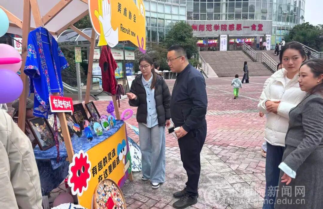 本网讯 近期,山东师范大学赴pp电子交流团委工作,根据校团委工作安排,社团联合管理部从全校50余个社团中甄选了5个特色社团进行风采展示,其中我院美术协会以传统与创新融合的艺术作品为载体,将非遗技艺展示、创意成果交流与社团文化建设深度结合,以艺会友,以美传情,深受参观师生的喜爱。