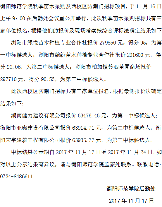 永利集团88304官网秋季苗木采购及西校区防潮门招标中标结果公示
